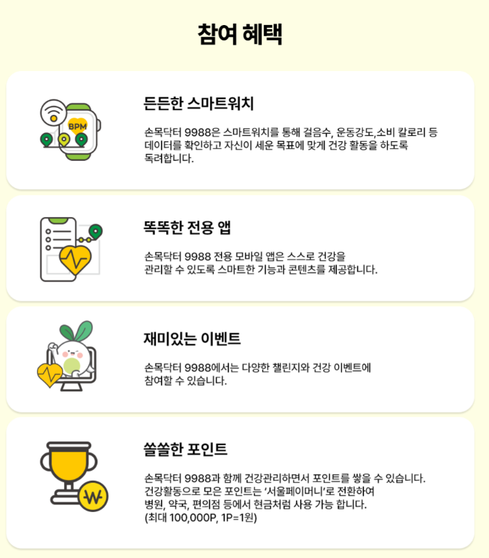 서울시 손목닥터9988 3차 프로그램 신청 방법 자격 과정 참여 대상 혜택 주의사항 건강 관리 포인트 획득