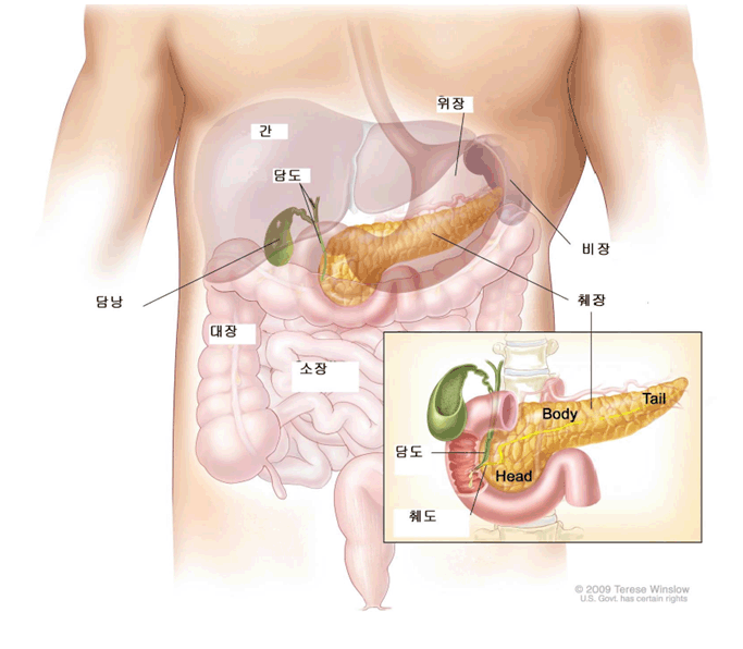췌장은 척추에 가까운 위치에 있어서 초음파 등으로 진단하기 어려운 경우가 많습니다. 따라서 등통증이나 배통증 같은 다른 증상으로 병원에 가시는 분들도 있는데, 이러한 경우 정형외과나 내과를 찾아 초기 진단을 받는 것이 중요합니다.