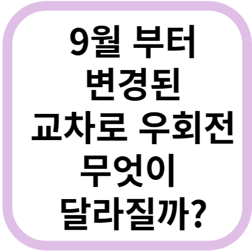 교차로에서의 우회전 규칙이 이번 9월부터 변경됩니다. 이번 변화는 모든 운전자에게 중요하므로 주의 깊게 살펴보아야 합니다. 알지 못하고 위반하면 과태료 범칙금에 걸릴 위험이 있습니다. 이 글에서는 바뀌는 주요 내용들을 간략하게 정리해 드릴 것입니다.